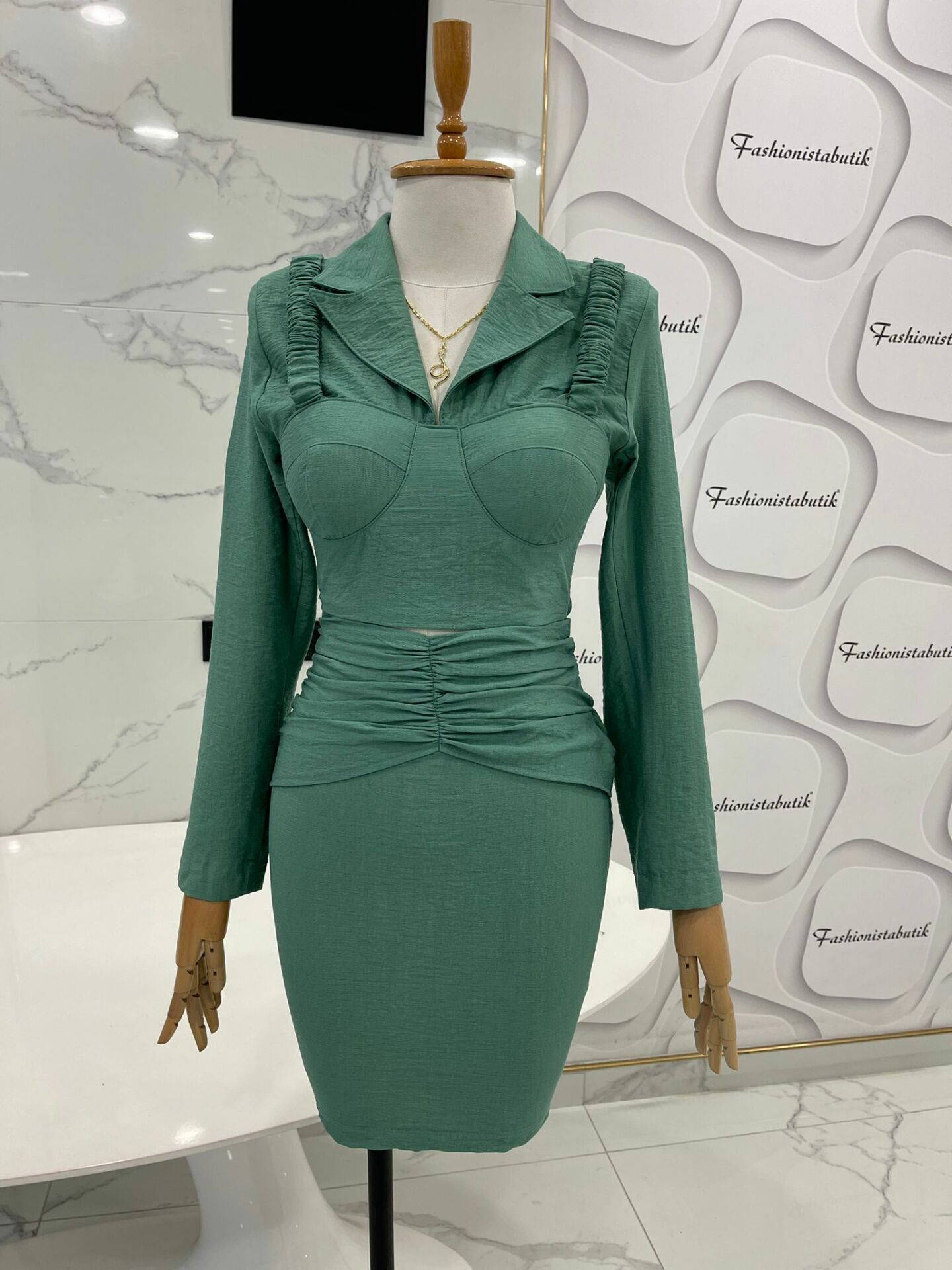Detaylar: Glop detayı, destekli göğüs, şık iki parça tasarım