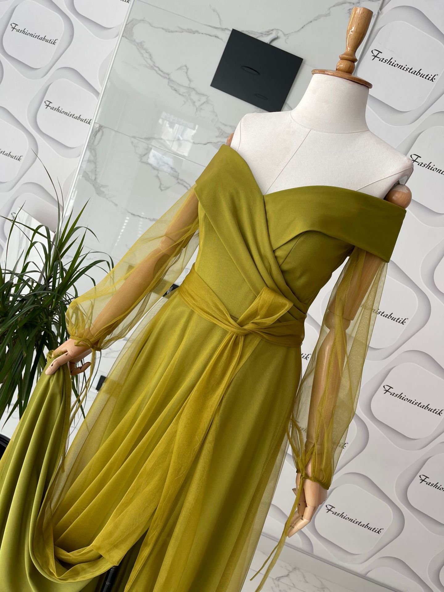 Canlı ve enerjik tasarımıyla öne çıkan Madonna Yaka Abiye, özel günler, davetler ve düğünlerde şıklığınızı ön plana çıkarır. Fıstık yeşilinin dinamik ve taze tonu, astralı tül kumaşın zarif dokusuyla birleşerek modern ve etkileyici bir görünüm sunar.