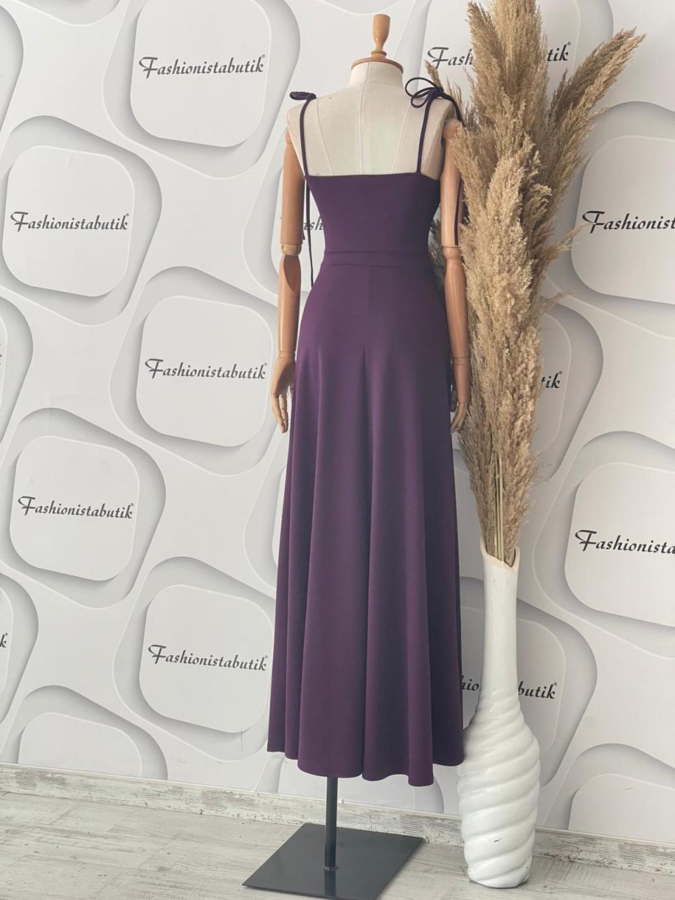 Omuzdan Bağlamalı Maxi Elbise – Mor 💜