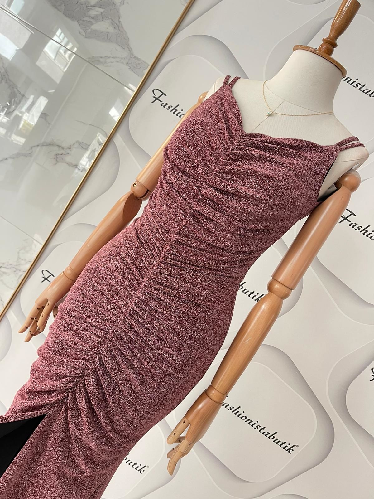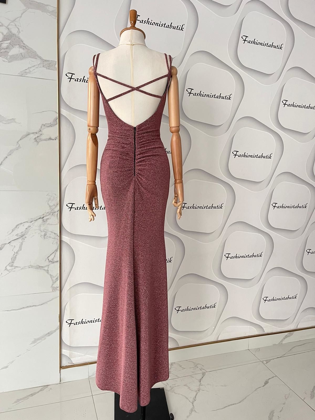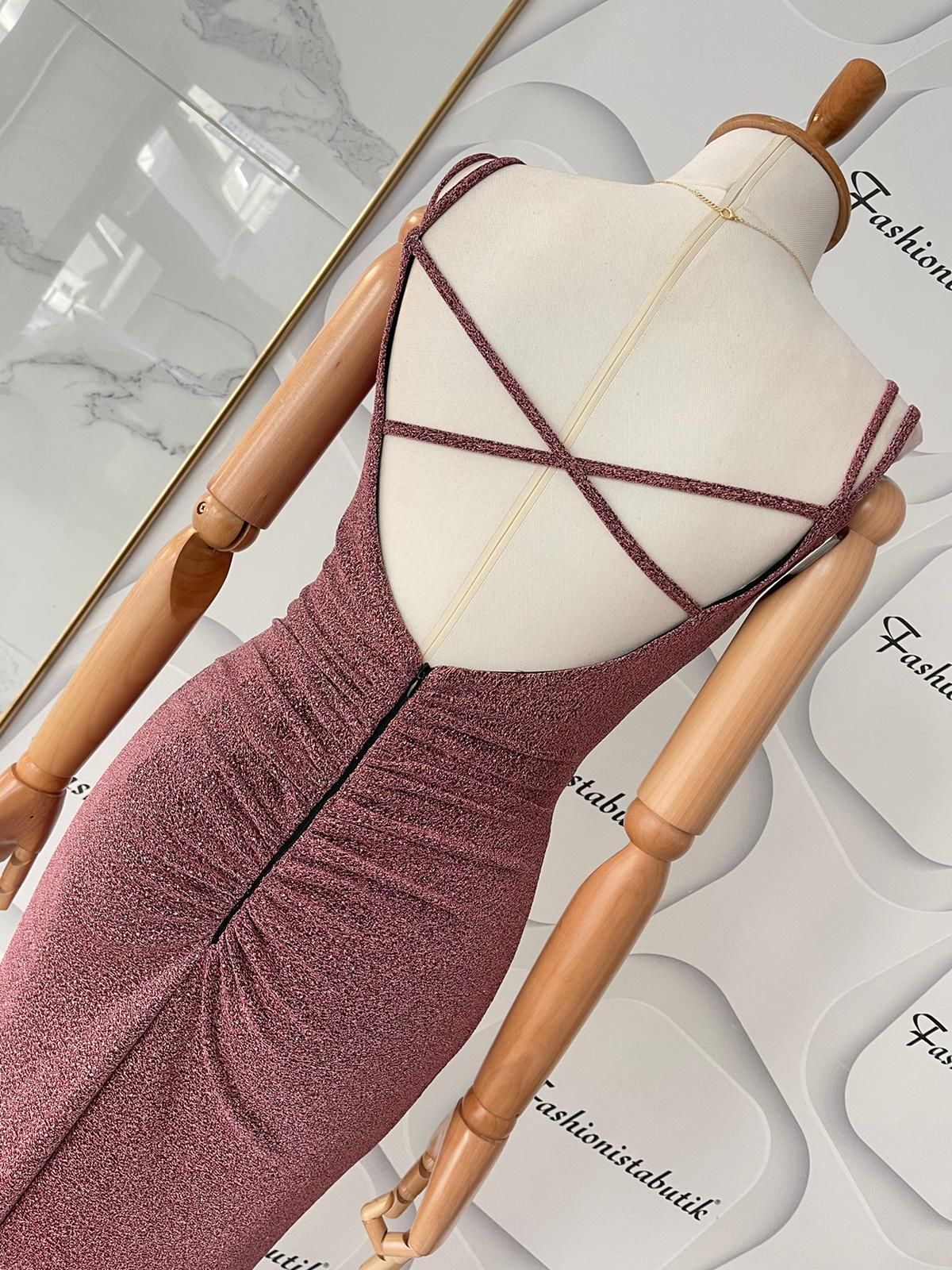 Sırt Dekolteli Tasarım Abiye – Pudra 🌸