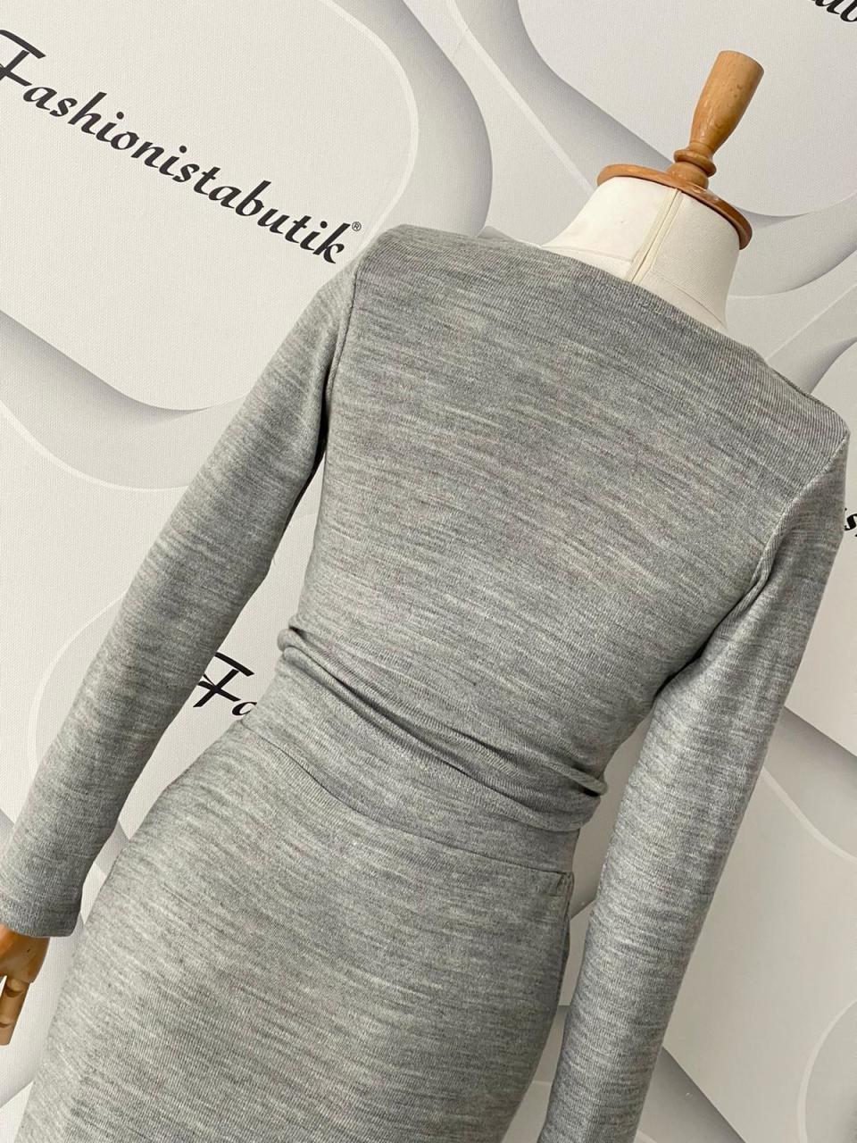 Likralı triko kumaşı sayesinde esnek ve konforlu bir kullanım sunarken, tam kalıp yapısı vücuda mükemmel uyum sağlar. Yüksek bel etek boyu 80 cm uzunluğunda olup, crop üst ise uzun kollu ve 40 cm boyundadır.