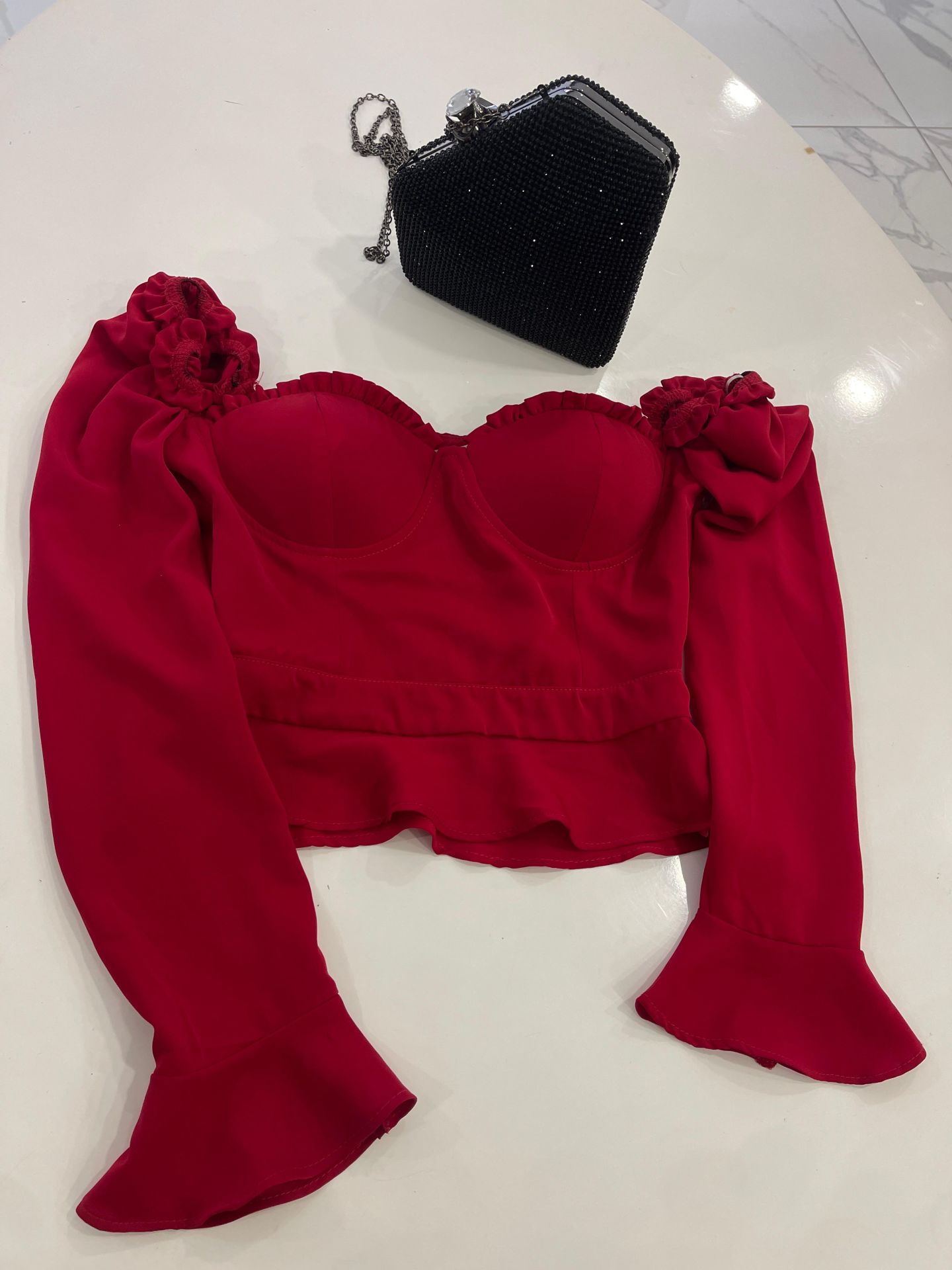 Detaylar: Gloplu göğüs, volanlı kollar, lastikli omuz tasarımı