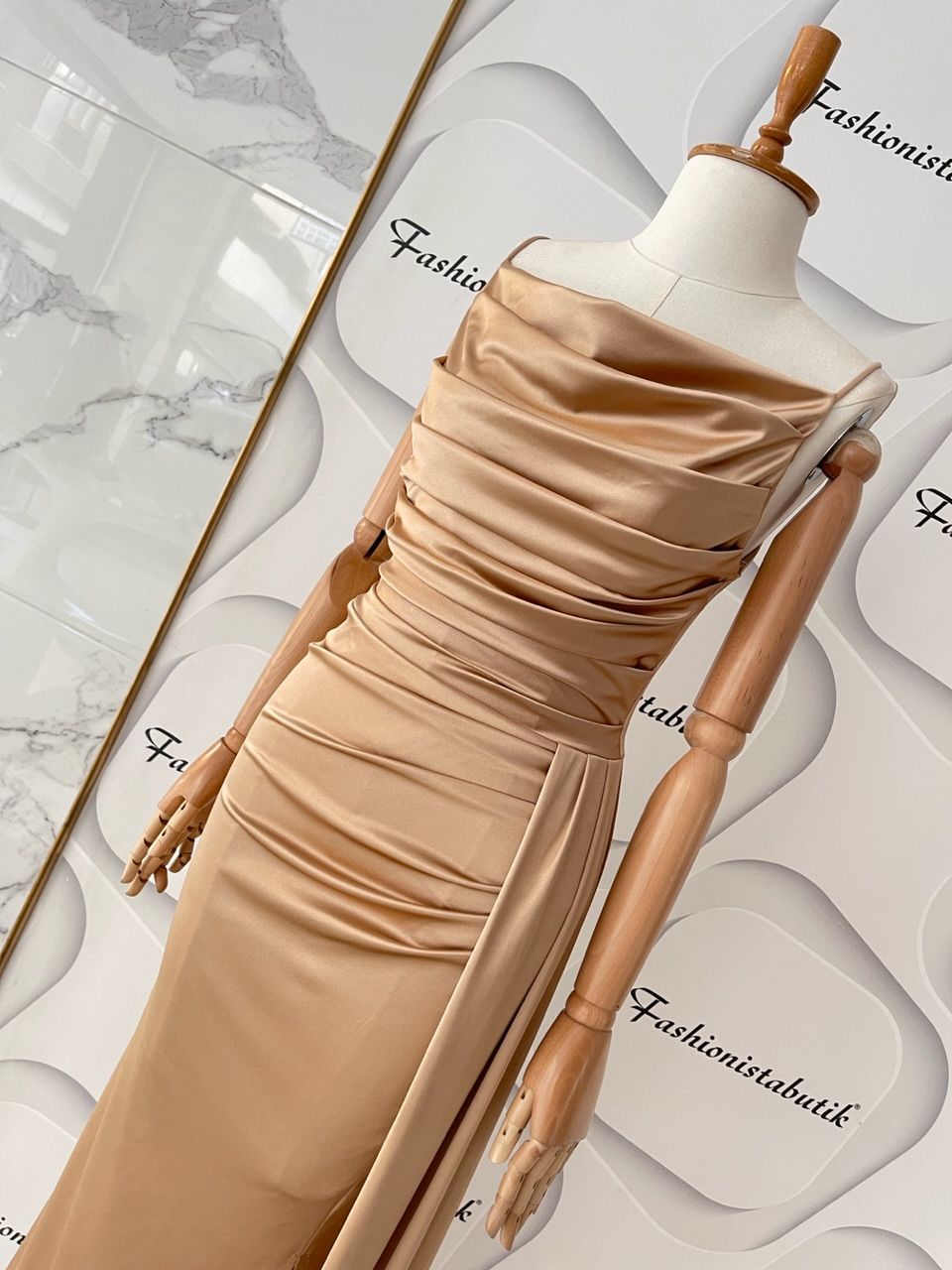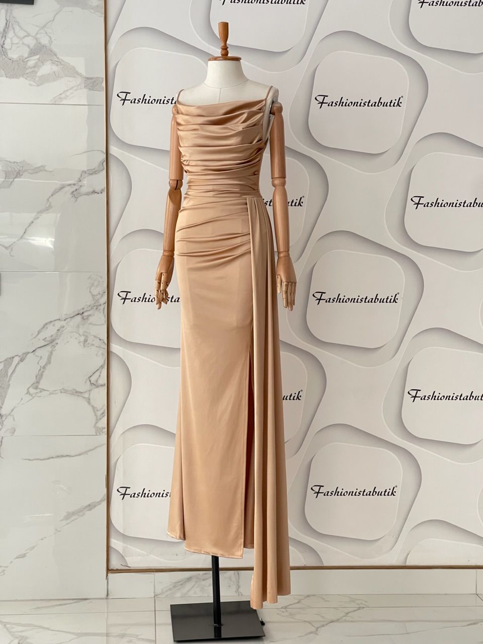 Detaylar: Yırtmaçlı tasarım, drapeli model, mini boy astarlı, ip askılı